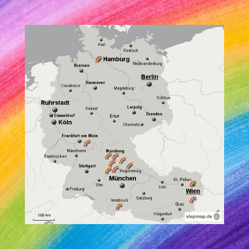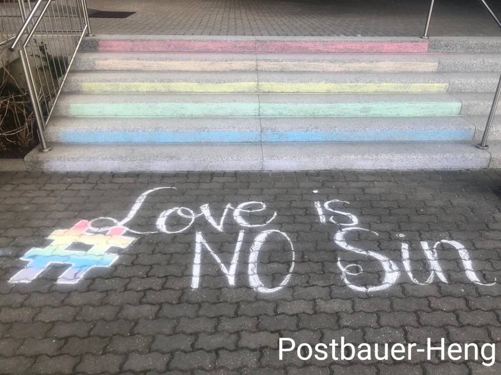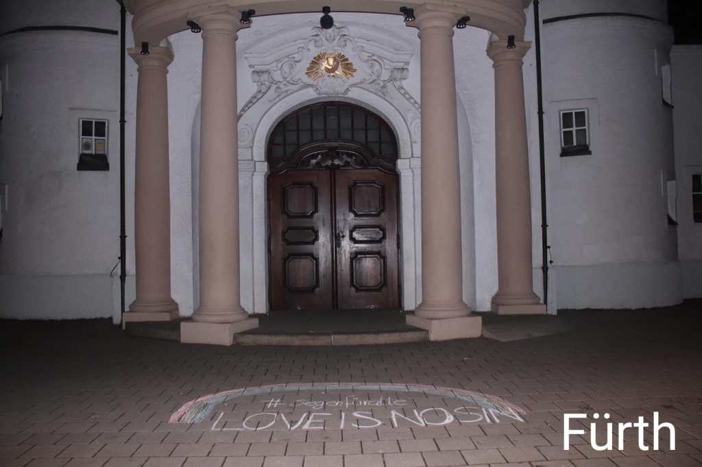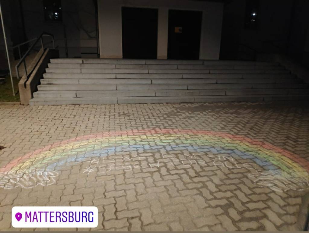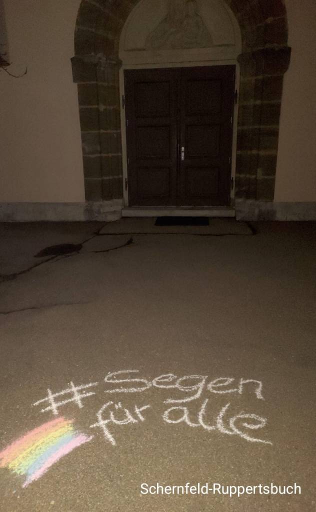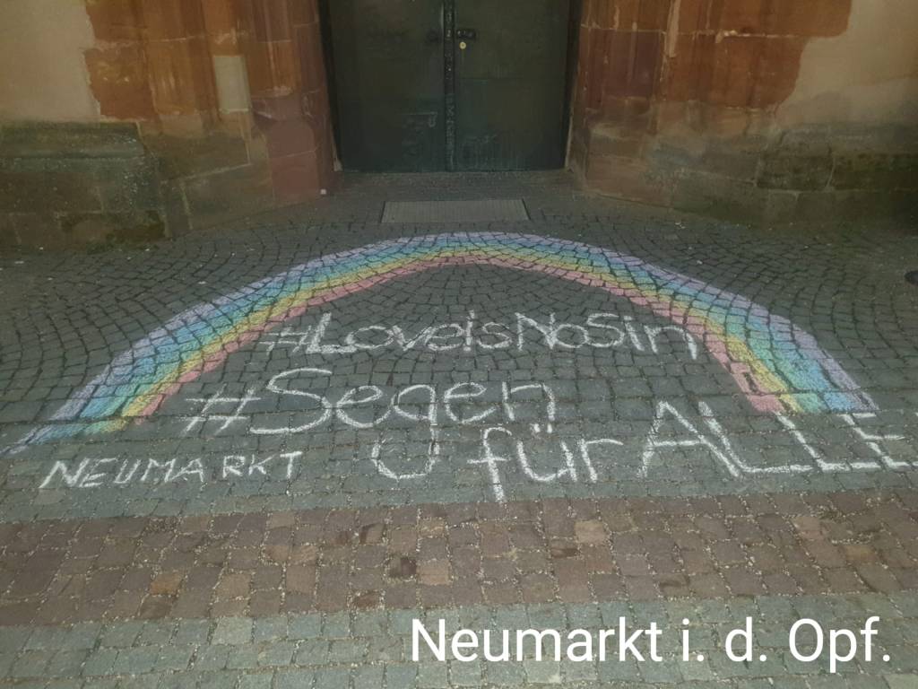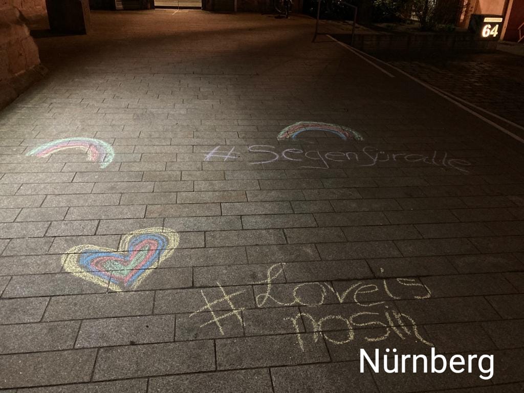 An 19 Orten in Österreich und Deutschland erschienen in der Nacht auf Sonntag strahlende Regenbögen vor den Kirchen und auf öffentlichen Plätzen. Passend zum Palmsonntag breiten wir einen bunten Teppich vor den Eingängen aus, um mit Kreide ein Zeichen des Willkommens zu demonstrieren.
